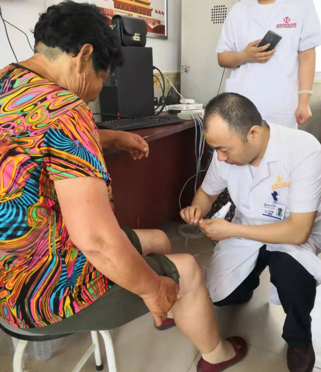 针对老年人多发的腰腿疼痛问题,针灸科专家现场诊疗,许多村民是第一次尝试针灸治疗,对诊疗效果十分满意。