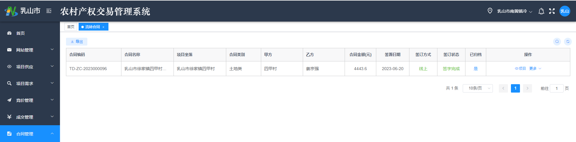 2022年7月,我市成功申报“以备案制探索开展农村土地承包合同网签”国家级改革试点,成为该项改革全省唯一试点。为顺利实施试点工作,乳山市依托“智慧农经综合管理服务平台”,搭建了农村土地承包经营合同网签系统,对原有农村产权流转线上工作进一步延伸,打通了线上交易的“最后一环节”,真正实现了全流程“不见面农村产权交易”。同时网签系统还以现有的承包地确权登记颁证数据信息为基础,扩展土地承包权管理功能,实现农村土地承包合同网签。