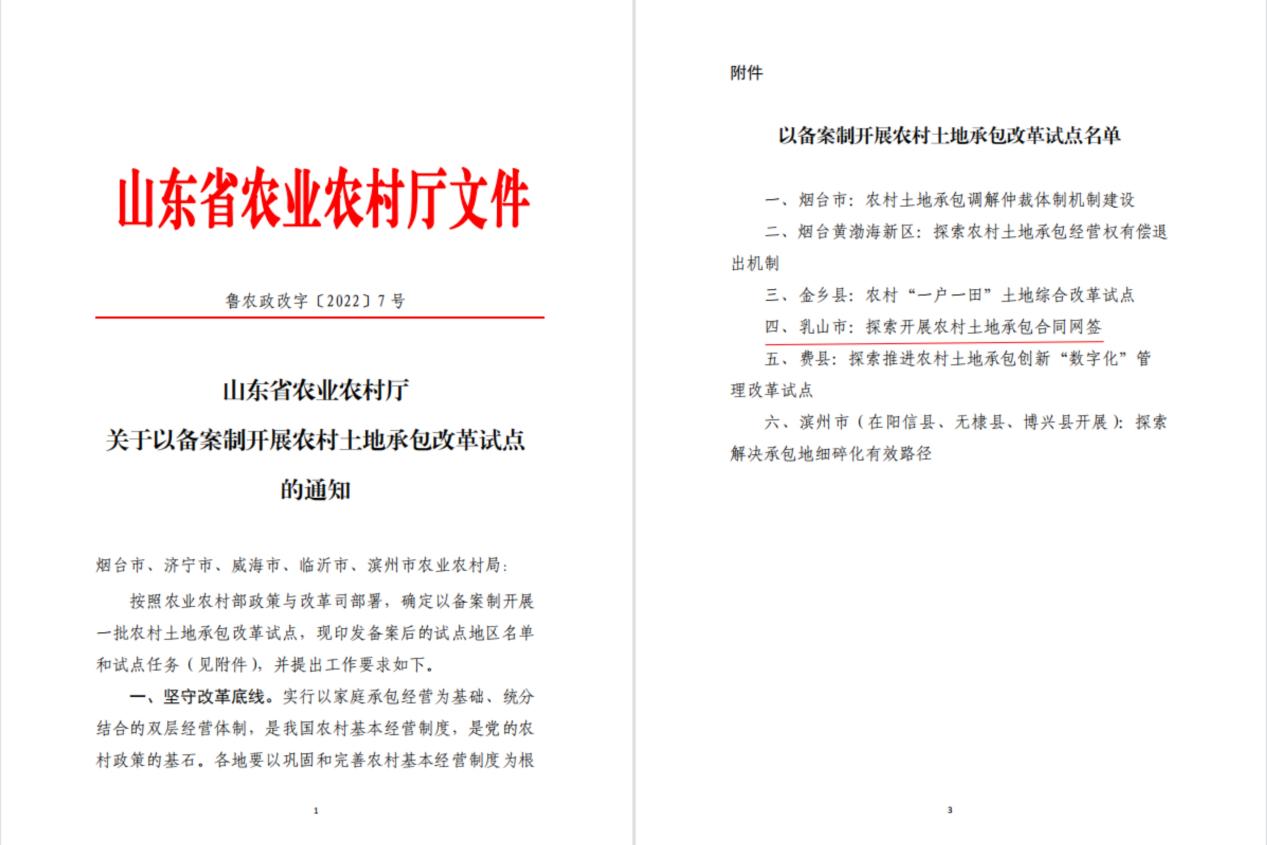 7月25日下午,全省首笔农村土地承包“网签合同”在乳山市徐家镇成功签约。